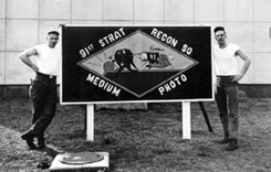 (Above) is a winter shot of the airmen’s quarters and (left) you see Ron Glowcheski and Dick Sniker holding up the 91st SRS emblem sign. We had no contact with departing aircrew members and turned to other resources to learn more about whatever adventures lay ahead.