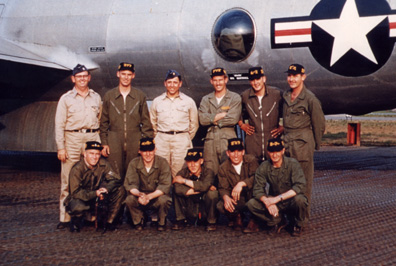 L to R, Back Row: Radar Operator, *Capt. Samuel D. Service Pilot, 1st. Lt. James A. Sculley Aircraft Commander, Major Samuel N. Busch Radio Operator, S/Sgt. William A. Blizzard Central Fire Control Gunner, S/Sgt. Miguel W. Monserrat Camera Operator, A/1c Danny Pillsbury
