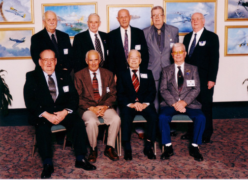 The 91st Squadron Panama troops gather for a portrait Rear, L to R: Bob Klingler; Roy “Pop” Kaden; Walt Ward; Front, L to R: Bill Robey; Bob Allen; George Tarver; P.D. Miller. |