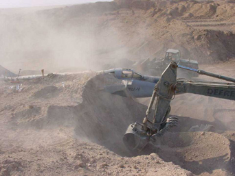 The buried aircraft at Al Taqqadum were covered in camouflage netting, sealed and, in many cases, had their wings removed before being buried more than 10 feet beneath the Iraqi desert.