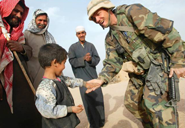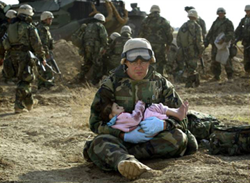 Whatever you call it, War is a form of Hell in countless ways. In spite of this, the sense of Humanity, woven into the very being of our fighting forces, has been present for as long as the United States became a free and democratic Nation. This remains true in our current conflict in Iraq, as examplified in these photographs. Credits are listed for each photo, where the source is known.