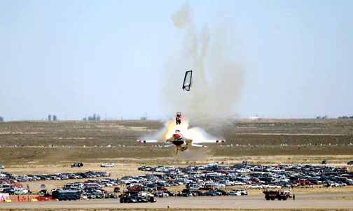Here's the story: Thunderbirds accident report released by Pilot error caused a U.S. Air Force Thunderbirds F-16 aircraft to crash shortly after takeoff at an airshow Sept. 14 at Mountain Home Air Force Base, Idaho. The pilot ejected just before the aircraft impacted the ground. According to the accident investigation board report released today, the pilot misinterpreted the altitude required to complete the "Split S" maneuver. He made his calculation based on an incorrect mean-sea-level altitude of the airfield. The pilot incorrectly climbed to 1,670 feet above ground level instead of 2,500 feet before initiating the pull down to the Split S maneuver. When he realized something was wrong, the pilot put maximum back stick pressure and rolled slightly left to ensure the aircraft would impact away from the crowd should he have to eject. He ejected when the aircraft was 140 feet above ground - just eight-tenths of a second prior to impact. He sustained only minor injuries from the ejection. There was no other damage to military or civilian property. The aircraft, valued at about $20.4 million, was destroyed. Also, the board determined other factors substantially contributed to creating the opportunity for the error including the requirement for demonstration pilots to convert mean sea level and above ground level altitudes and performing a maneuver with a limited margin of error. End of this presentation You may Home - Contact Us - Cold War Hist. - 91st SRS Hist. - Stardust 40 Mission Story |