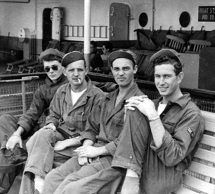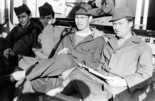 We were sheltered from the wind and spray and could keep reasonably warm. Just like any two G.I.s, we amused ourselves talking about our families, our adventures, but mostly, about girls. I'm certain we told the same stories twenty times over, but anything was better than “going below.” Sooner or later, however, we would have to grab a few Zzzs and down to the “Pit” we’d go. |
