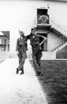Bob Stadille and Bob Wolfington, clowning for the camera in 31st Recon Squadron barracks area. Photo Ctsy. Bill Sutton |
