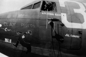And I was the flight engineer. We were a smooth-working crew, and we had great pride in our ship. We named her Clay Pigeon, as if by thus publishing her indifference to catastrophe and her willingness to surmount it, we were defying our enemies. The Clay Pigeon already had distinguished herself on D-Day, June 6, 1944. |