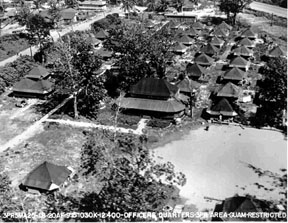 Then the whiskey really started to come in handy. Then we were between the docks and the Corps of Engineers lumber yard, so trucks had to pass us leaving. Every time we’d start running low on lumber, we had somebody wave a bottle of booze at a lumber truck, and we’d have what we needed the next day. For our flight commanders, for a case of booze, we got five Frigidairs to put into our tents. And we had gadgets we could use for making soda water ... so it was quite a setup. The Seabees (construction battalions), and the Navy seemed to control all the goodies, but we swapped our booze for the good things of life, if you will. Quid pro quo. [laughter] |