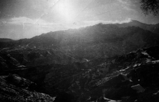 February 5: Up at 3 AM and on our way. Bitter cold - towels on feet and face. Passed through hot (Japs) spot - set fast pace. Guerrillas with us are Korean volunteers. Slept three hours - fairly warm. Ate most so far - eggs, chicken, onions, meat, bread, tea. Had alert - Japs were sighted approaching but it turned out OK. Peasants made us a present of dozen new woolen stockings and we really needed them. Also had cookies, nuts. Cpl. Fall having trouble breathing (asthma) - started last night. Morrison getting saddle sores (can’t walk, sprained ankle). Washed handkerchiefs - have three of them. Fellows becoming expert with chop sticks and few Chinese words. Commander gave me a fork yesterday, but I use it only in emergency. (We use chopsticks.) Throat a little sore - nose running - no bad colds so far. At least half of crew swear that they will never fly again.