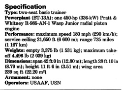 Entry into Aviation Cadet Training: On August 9, 1942 I was called into active duty as an Aviation Cadet and traveled with a small group to Kelly Field, at San Antonio, Texas. Six weeks later it was off to Santa Anna, California for another six weeks of ground school. Then on to Thunderbird Field at Glandale, north of Phoenix, Arizona. There we began flying the Stearman PT-13 (A Primary Trainer) while putting more time in further ground school training. The PT-13 was a dandy plane for aerobatics. I believe each cadet logged around 90 hours in this phase of training. Aviation Cadet Norman K. Arvidson PT-13 Primary Flight Trainer Basic Flight School: Our next air station was Marana Army Air Base, Marana, Arizona. There we flew the BT-13 (Basic Trainer) manufactured by the Vultee Aircraft Co. It was a two place aircraft with tandem seating, a glass canopy, and a 450-hp engine. It was a real sport to fly. We logged around 60 more training hours in the air with our time split between transition flying and instrument flying training.