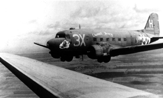 Moving on to the War Zone: Soon thereafter, we departed by train from our home station, stripped down to our personal effects and gear, to pick up our brand new Douglas C-47 Dakota and began our final preparations to depart for overseas but, where overseas? We later learned that our route to Europe would be via; Miami, Fl.; Puerto Rico; British Guyana; Natal, Brazil; Ascension Island, Liberia for a gas stop, 1200 gallons (the aircraft burned 90 gallons per hour); Dakar; Marrakech, Morocco for a nine day layover for crew rest. Then up the Atlantic to Liverpool, England and on to Greenham-Commons Air Base, our first front line combat station. |