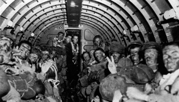 Photo ctsy Lifes Picture History of World War II I had not yet spoken to the crews of the 87th Squadron so I set out for their area. Paratroopers were about each plane inspecting their chutes or resting on the ground because of their heavy equipment. One said, Chaplain, here is the latest version of an army mule. A few paratroopers were veterans of the earlier Mediterranean battles, but most of these men had never before made a combat jump. Here they were now with faces painted with chocolate, helmets camouflaged, and a mountain of equipment. Here they stood ready to do the things for which they had trained for months. Most of these boys had never killed a man and I shudered to think of the thoughts that must be in their minds. Frankly, I didnt know what to say for my gospel is of Jesus, Prince of Peace. I wondered what I could do here, and still wonder, but I kept on. Most of the fellows were resting under the wings of the planes, smoking a cigarette, and trying to be as comfortable as possible.