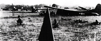 The gigantic mission involved 906 CG-4As. A total of 140 of the 295 planes pulling them were hit and 12 C-47s crashed. A large percentage of the CG-4As landed on target and brought in 3,492 troops, 202 jeeps, 94 trailers and a great deal of ammunition and artillery. During Operation Broadway on March 5, 1945, 34 American gliders crash landed in hostile Burma jungles and 17 came in at Chowringhee hauling 478 men, three mules and a bulldozer to build sorely needed runways. Later, another 10 CG-4As went in to Myitkyina airport to rebuild the important runway there. Only six CG-4As and a single CG-13 were used in June, 1945, in a landing near Aparri in northern Luzon in the Philippines to carry in elements of the 11th Airborne Division. American glider pilots were scheduled for Operation Eclipse, the Allied offensive planned to capture Berlin, but this glory went to the Russians in April, 1945. They were spared from an aerial invasion of Japan when the atomic bomb was dropped on Hiroshima and Nagasaki. But the casualty rate among glider pilots in combat had already soared to 37%. Even glider pilot training was dangerous. In primary training, they were required to stop the engines of their airplanes while airborne and bring their light power planes in for deadstick landings. Stateside training accidents resulted in the loss of three to six gliders daily. Seventeen glidermen were killed and 162 more injured in training accidents between May, 1943 and February, 1944. Combat glider flying was far more traumatic and scary than that depicted in glider training films. Only 5,000 American glider pilots were among the 16 million American military personnel in World War II. They were all volunteers, cocky, tough and not at all reticent about letting anyone know that the letter G on the silver wings stood for Guts. A 101st Airborne Division historian described them as the most uninhibited individuals in the Army. There seemed to be something about flying a glider that freed a man from the ordinary restraints of Army life. They successfully defied all attempts at organization. End of Attachment to Chapter 5 Return to Chapter 5