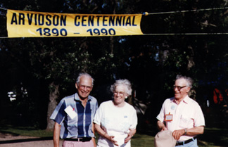 Chapter 9 As a fourteen-year-old, Hans Arvidson left his homeland of Sweden in 1887 starting a heritage that continues today through second and third generations. Leaving Sweden by boat, Hans came to Minnesota where he worked for his Uncle Ole Arvidson for a year to pay back the $365 that he borrowed for his passage here by boat and train. Once he had paid Uncle Ole back, he headed to Argusville, North Dakota where he worked in the grain fields driving six horses and two mules on a big plow. Because he was expected to make eight miles a day, (long rounds) with the plow, he started early in the morning. He often related the story of how the mules wouldnt move after 12 o'clock or 6 p.m. as they knew when it was time to quit. Hans found his way back to Eastern Township and Spruce Centre, where he bought a share of the flour mill with Ole Arvidson and Jens Nelson. They hauled flour by ox team to Eagle Bend, Minnesota, where it was put on the train. Coming home, Hans would get the ox team headed toward home on the trail, tie up the lines, lay back to take a nap and when they stopped, would find himself back home at Spruce Center. Water power was the source of energy for the Mill and often they would work day and night making flour. A replica of that Mill now sits on Hans' homestead, made by his granson, Jim. Wanting to farm, Hans traded his share in the mill to the Merickel brothers in Wadena, Minnesota. He obtained the 120 acres of land that is still a part of his grandsons farm of today. A log cabin was built on the land, and this is whre he brought his bride Sophie. She had come from Sweden at the age of 5 with her parents, Tuve and Hannah Anderson. As a young lady, she walked 8 miles to a Swedish church by Parkers Prairie for her confirmation.