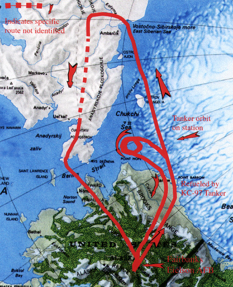 President Truman approved the overflight, which was conducted by a camera-modified B-47B bomber aircraft on October 1952. The USAF used a modified B-47 because the reconnaissance variant (RB-47) had not yet entered the inventory and this mission required this aircraft’s speed. The subsequent flight, called Project 52, was flown from Eilson AFB, Alaska. After air-refueling, the primary B-47 crew flew the 3,500 mile mission entering Soviet airspace between the Siberian cities of Stanovaya and Amberchik and flying over 1,000 miles of Soviet territory before exiting from the Chutotskiy Peninsula.