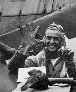 Here are some facts about my squadron of 18 torpedo planes: Made 653 strikes, dropped 480 tons of bombs, expended 53,600 rounds of ammo, fired 221 rockets, laid 35 mines, dropped 17 torpedoes damaged and destroyed 37 Japanese planes, sunk 93,500 tons of Japanese ships, damaged 30,500 tons of Japanese ships. The whole Air Group 16: Shot down or destroyed 150 Japanese planes. The fighters were exceptional. Alex Vraciu shot down 23 planes - 6 in one trip and still had 150 rounds of .50 caliber ammo when he landed. Last June 19, 2000, was 56 years since I spent that night swimming in the Pacific Ocean. During these years I continued to fly as a reserve Naval aviator for 26 years. I went to college twice and got two degrees, taught school along the way and then started my commercial aviation career in 1953. I flew one year for American Airlines, 12 years for Central Airlines, and 16 years for Frontier Airlines I tell you today that it is a miracle that I am here. I do have a wonderful family and now I have that cherished legacy I dreamed of while swimming in the deep waters of the Pacific Ocean. |