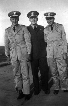 Below: Tom Bronn (L) with two friends celebrate graduation from flying training |
