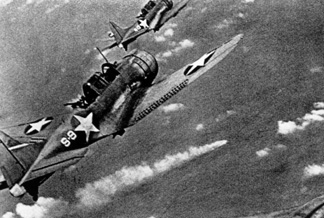 The assignment for the torpedo bombers was to follow immediately after the last dive bomber started his dive. That was the way it was planned and that was the way it happened. We commenced our dive at about 9500 feet. I was the third Avenger to dive out of the 5 remaining torpedo planes. Sterrie had led us into position on one of the two large carriers. All of the enemy ships were taking evasive action as we dove. |