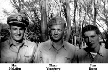 All of these boys were also married, which made the consecutively alternating job of Squadron Duty Officer a nightmare; each officer would have it about once a week and have to forsake his wife for a dirty overnight pallet in the cold and noisy hangar. Finally Axel Youngberg, giant and blonde, and Buzzy Thomas, dark and swarthy, turned up, their bachelor status occasioning great joy among the husbands. |