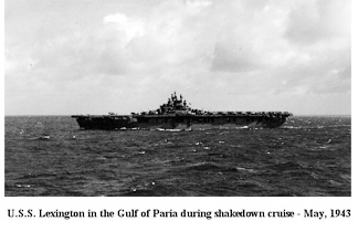 One night we had "Philadelphia Story" for a movie, and we considered that, as carrier pilots, we would soon leave Hepburn and Philadelphia far behind, as monks leave the world. Another night we had a movie in which Admiral Charles Laughton quoted John Paul Jones's words from the deck of the Bon Homme Richard: "We have not yet begun to fight." Someone told me that this Lexington we rode had been named the Bon Homme Richard until the sinking of the old Lex. It still might bear that foreign name appropriately (I thought, stretching this information), for we, Torpedo 16, most certainly had not yet begun to fight.