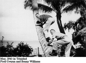 To balance the gruesome aspects of the Squadron's trip to South America was the exciting first encounter with foreign lands. Not that we ever even talked to the natives of Trinidad or learned anything about the island's history. Military men usually think of places they've been in terms of their military or alcoholic movement there. For Torpedo 16, Trinidad was an air-field with just one runway, so we did know we were in the tropics, where the wind is stable and prevailing. |