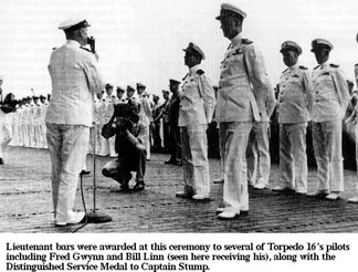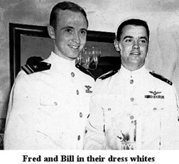 Aggressive and determined throughout numerous bombing, rocket, and mine-laying missions, the members of Torpedo Squadron 16, repeatedly defied intense Japanese antiaircraft fire from guns of all caliber while pressing home vigorous attacks against hostile bases and vital shipping. Their expert airmanship, indomitable fighting spirit, cool courage in the face of terrific opposition, and unwavering devotion to duty throughout, was in keeping with the highest traditions of the United States Naval Service. By late summer, 1944 Fred and Bill found themselves back in the United States, where their duty station was Jacksonville, Florida, the place where just two years earlier, they trained together to become aviation cadets. Their dreams and ambitions as Navy pilots had been largely fulfilled, in some cases, more than they could have imagined. Thus began a gradual transition process for their return to the challenges and routines of civilian life. |