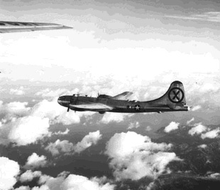 As we made our camera run, the ship’s intercom was filled with tense comment as two imaginary sightings of enemy aircraft were reported. The cloud cover was a problem for our camera people and a threat to us, for who knew how many MiGs might be hidden there. We were committed, however, and our cameras continued to roll. Luckily, no MGs appeared, and for the next five minutes we sweated it out as our ship slowly turned east. Earl then put the nose down to pick up airspeed, and with our cameras off we headed toward Japan, the risk of becoming an international incident diminishing with every turn of our propellers. Six months later, I was advised by our intelligence people that nothing unusual had been discovered by the photos we took that day. All the film was destroyed and not a word was mentioned of our flight, except perhaps in this writing. When we returned to Kadena, we were rewarded with orders to fly one of our B-29s to Tinker Field in Oklahoma City for a major overhaul. All our aircraft were veterans of World War II missions over Japan. Their aluminum alloy fuselages were so eroded by exposure to salt air and humidity that you could poke a finger through the skin between the rib supports. Our orders were to proceed to Tinker Air Base on or about 9 June 1950, via Anderson AFB at Guam, Kwajalein in the Marshall Islands, Hickam Air Base in Hawaii, and Travis Air Base in California. Of more importance to us, we were all authorized a ten-day leave before returning to Okinawa. Our departure day was filled with intermittent rainfall, and in the evening we climbed aboard our aircraft and taxied out. Earl cleared our departure with the tower, poured the coal to those four big four-bladed propellers, and we climbed away. Layers of scudding clouds blanketed the Pacific Ocean below, but soon we were in the clear cruising at 20,000 feet above the mass of whiteness below. Francis Casserly, our navigator, said we would reach Anderson Field about one o’clock in the morning. I could see some stars above and noticed that Francis was working his sextant in the forward navigation bubble to check our position. One of our primary navigation aids was the direction-finding radio, called the RDF, by which we could home on selected ground broadcast stations. The directional needle on the instrument panel would point toward the selected station and reflect a bearing for steering purposes. Using this aid on several stations, one could triangulate radio direction fixes and then calculate an estimated time of arrival. I had used the RDF many times and knew we would have no difficulty reaching Anderson Field, so I relaxed, dreaming of home. About midnight, an hour out of Guam, I tried our RDF and noticed the needle was wandering aimlessly from side to side. I only heard static and thought we were probably too far from the station. Earl tried to reach Anderson Field but did not get a response, and Casserly was having some difficulty getting the three fixes he needed to determine our position. By 1:00 A.M., I was still unable to find the Guam radio station. Cass had no reliable star fix, and the tower had not responded to our repeated calls. Earl took us down to 1,000 feet below the clouds for a look around. We should have been able to see the lights from Anderson Field but only saw dark choppy waters and an occasional whitecap. Our flight engineer reported that we had two more hours of fuel on board. Earl said we would make it and decided to lean the mixture way back and start a square search pattern. Earl and I then alternated on the controls, first steering west for five minutes, then north for another five minutes, then east for ten minutes, making right turns while flying a box pattern that gradually extended each leg of our flight. Meanwhile all hands were at the windows trying to see the lights at Anderson Field or anything. An hour passed, slowly. We were getting anxious wondering what it would be like to land at night in the Pacific. The B-29 was not known for its flotation ability. We had to do something soon, so we climbed above the clouds again. Earl turned on the emergency frequency and began to broadcast a distress message. About twenty minutes later, a rather calm and pleasant voice called to say that they had our position and we should continue to circle until advised. A few minutes later, a B-17 Air Sea rescue pilot radioed a course for us to steer and told us to look for a yellow flare. They had us on their radar and were above us about a mile ahead. There was the flare, a distant, flickering yellow light, slowly descending, suspended by a tiny parachute, swaying gently as it passed through the clouds trailing white smoke. Then I saw the dark silhouette of the B-17 above the flare, and we swung in behind him, beginning the descent to Anderson Field. We landed with about twenty minutes of fuel ramaining. In the morning, we had to endure the embarrassment of a Board of Inquiry regarding why we were lost. Our RDF had been malfunctioning, the winds aloft had blown us about one hundred miles off course, and Casserly had not been able to pinpoint his position because of clouds. I was so relieved to be on terra firma that the inquiry seemed trivial. Our navigator had to do some sweating though. End of page 2 of 2 Pages, Part 1 Cover Page Editor’s Introduction Table of Contents