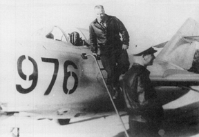 Above Right (2): photo of Major Anatoly Karelin getting out of the cockpit of one of the MiG-15bis fighters he flew in Korea. Below (1): Profile drawing of the MiG-15bis "325", the one flown by Anatoly Karelin on the night of 10 June 1952, when he shot down 2 B-29As, #44-61967 and #44-62183 (28th BS/19th BW). This MiG had been the personal aircraft of another Russian ace, Yevgeny G. Pepelyayev (19 victories, 17 of them claimed while flying this aircraft). Below (2): List of victories of Major Anatoly Karelin |