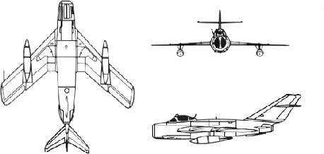 Above Right (1): Profile drawing of the MiG-15bis "300", the usual ride of Anatoly Karelin, and the aircraft he flew the night of 4 July 1952, when he shot down the RB-29A #44-61727 "So Tired".