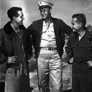 He then got on the radiophone and informed the authorities at Hill AFB of our arrival. Soon we were greeted by Major “Digger” O'Dell (nicknamed after an undertaker in a popular radio serial), the Mortuary Officer at Hill Field. “Digger” drove us to the Base Hospital at Hill AFB where we filed a report of the accident and were given a physical examination. We learned there was a sandbar connecting the island to the mainland which afforded a path of shallow water that jeeps and trucks could drive through |