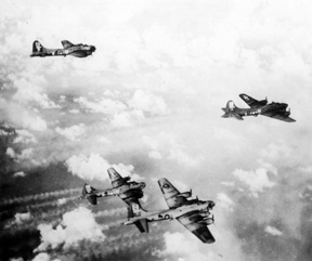 The Flying Fortress had dropped its load on the German Industrial complex from a high altitude. The substitute Bombardier who was taking the injured Lt. Melvin's place was thankful he had found what seemed to be the only hole in the clouds over the entire country.