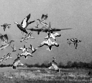 His plane was a part of one of the B-17 squadrons placed into action over Germany quite early in the course of the War in Europe. The English country side was dotted with landing fields and hangars for the Allied bombers. On the return from one of their missions, Len's plane was lined up for landing and flew through a flock of ducks. The plexiglas window in the front of the Bombardier's seat was smashed by the fowl impact. Lt. Melvin was gashed across his cheek by a sharp edged piece of the shattered pane. |