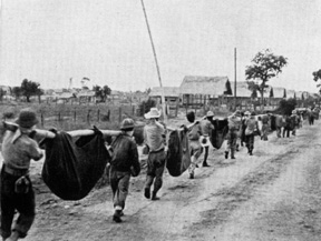 long hike to prison camps Left: Map illustrating route Below: Prisoners, carrying those |