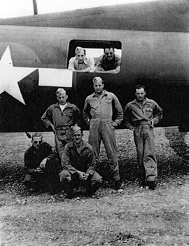 in February 1945 by B-17 A/C, lst. Lt. Peyton Jacobson From L to R: Standing: Sitting: Location unknown |