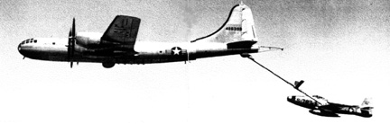 from the 91st SRW assigned TDY to the 91st SRS, refuels an RF-84 over Korea. |