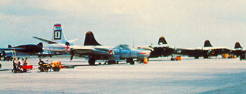 While operating from Yokota Air Base, the 91st SRW also had a detachment of RB-45C Tornados stationed at Sculthorpe, England. Only 33 RB-45s were ever built and the 91st SRW was the main operating unit for this ariframe. Other aircraft working from England were another detachments of RB-45s temporarily stationed at Manston AB, Kent; an RB-29 unit at Lakenheath and an RB-36 detachment stationed at Brize Norton. It was the later RB-36s which actually conducted reconnaissance flights which penetrated the western Soviet Union. (9) |
