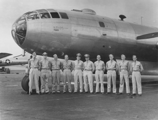 We did our phase training in the F-9s. The squadron grew in size with gunners, electronic technicians and corresponding increase in armament, radar, etc. We were to train 16 F-13 crews with 4 of them slated to go to the CBI and 12 to the Pacific. Our ground echelon left Smoky Hill by train to the west Coast and then by boat to Saipan in late summer. Our first F-13 arrived in August. There was an engine overheating problem with the first few planes delivered to us. To minimize the problem, after pre-flighting the plane at the apron parking area, we would tow the plane to the end of the runway, make a very rapid start and take off immediately. |