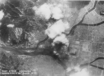 We did all the pre-invasion photography prior to the Okinawa campaign. Interesting, the most valuable photography turned out to those providing the water depths in the harbors that the Navy utilized for the landings and support for the troops once ashore. With the taking of Iwo Jima, the squadron acquired a flight of four B-24s specially equipped electronic surveillance planes that operated out of Iwo Jima against the radars and communications in Japan. They provided a valuable asset. Iwo Jima also provided a safe haven for several of our planes that encountered mechanical problems that would have prevented them from returning to our Mariana Island bases on Saipan, Tinian and Guam. Being able to land on Iwo for repairs and/or fuel was a Godsend to not only bomber crews but also several of our recce crews We also sent a flight of four F-13s to the island of Moraoti to map Java for General MacArthur.. At the end of July, I was ordered to send two of our top crews to Tinian. I was not informed of what they were to do. Don’t ask. One of them wound up 15 minutes behind the Enola Gay on its historic drop of the first atomic bomb on August 6th. It also happened by coincidence that I had another plane near Hiroshima that took pictures of the atomic cloud. |