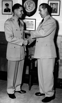 My next assignment was equally satisfying. I was loaned by SAC to NORAD (North American Air Defense Command) for three years at Ent AFB, CO. As a charter member of NORAD, I was assigned as Director of Operational Intelligence. General Partridge, who had commanded FEAF, was the first NORAD commander. He retired shortly thereafter and was replaced by General Kuter. I reported in during the summer of 1957. Sold our home in Riverside and bought a new home in Colorado Springs. Son Gary was entering Junior High School and daughter Terry in Elementary school. 1957 was the year that the Air Force Academy moved from Lowry AFB to their beautiful new campus. I asked why the Chapel at the Academy had 17 spires. I was informed that twelve of the spires were for the twelve apostles, and the other five spires for the five members of the House Appropriations Committee that funded it. A very good reason and a great joke! This was my first joint command assignment. I was blessed with a competent Navy Commander, Pat Frick for a deputy. We worked well together. I was fortunate to be promoted to full Colonel in March of 1958. Ironically, I also received orders that same day that I now held the rank of permanent Captain in the Air Force. I had been a reserve officer since commissioning. We provided the scenarios for several war game exercises as the cold war with the USSR heated up. We were also busy with the initial planning of the mission and space requirements for intelligence prior to the construction of the hardened NORAD buildings that were later to be built into Cheyenne mountain. A very interesting three years in an intelligence assignment. At the end of my tour June 30, 1960, I was assigned to SAC Headqarters, Bellevue, NE, just at the time that the Joint Strategic Target Planning Staff (JSTPS) was formed. I found myself wearing two hats. One, as Deputy Director of Targets on the SAC Intelligence staff; the other as Chief of Targets in the National Single Target List Division (NSTL). |