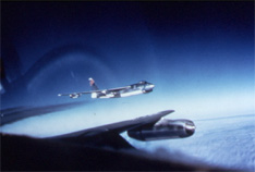 On Sunday afternoon, doing a bit of work in the yard, I stooped over to turn the water faucet off on the side of our house. I got a sudden jolt in the back and a whole cluster of muscles in my back went into the fully locked position. By bedtime, I had to crawl up to our second floor bedroom on my hands and knees. Monday morning, navigating with difficulty, I headed for the base wondering how to deal with this issue. Should I tough it out and risk killing my crew (my friends) or should I talk with the Flight Surgeon and get some advice and/or help. I chose the latter and went to our 98th Bomb Wing Flight Surgeon’s office. He was at the officers club having coffee. I went to the officers club and located him, chinning with some of his compatriots. I apologized for the intrusion, standing there in my flying clothes, and told him what had happened to my back. (Note: This was not our first discussion regarding this dilemma. As I will outline later on, this doctor believed that any flyer who was ill must be afraid to fly and/or goofing off.) He gave me a sly smile that said to me “Stone, I know you are doing this because you don’t want to go flying overseas and be away from your family. Quite possibly you are afraid to fly, under any conditions.” In reality, he looked up at me and said “Just go take a few APCs and you will be just fine.” Another case closed for this worker of medical miracles. I limped off down to Operations. I discussed the situation with my very understanding crew members and they said they would help see us through, as needed. We attended a planning meeting and learned that the weather over the North Atlantic was deteriorating and our departure was going to be delayed a few days. Lucky for me. I spent the next few days doing what I could to rehabilitate my back and put it in working order. If my records are correct, we departed for Lakenheath on the 9th of November, my birthday. We launched in small groups, just a good size for a small flight of tankers to refuel, enroute. The sun was going down as we set our course for Newfoundland and then Lakenheath. As we got into our cruise mode, I tried to flex my back enough to keep it from locking up on me. As we approached the refueling area I became aware that I couldn't put my left foot on the rudder peddle without my back going into a spasm. As we began our descent to find our assigned tankers, I did so with my left leg hanging out in the isle crawlway and a prayer on my lips. The atmosphere was really spooky. You could look in any direction and see the Northern Lights effect all around you. It was very murky and misty. Through good coordination we pulled up under our tanker with other tankers and our B-47 cell companions doing the same. As I moved in and got hooked up, the KC-97 tanker’s boom ejected as soon as fuel pressure was turned on. I moved in again, hooked up, and the same thing happened. Each disconnect gave us a face full of fuel all over our canopy. After about the fourth ejection, the boom operator told me he that after we had hooked up, he would turn up the fuel pressure gradually to see what the pressure disconnect regulator would tolerate. When we determined what kind of a fuel flow we could achieve, without a disconnect, we realized we were using fuel faster than he could transfer it to us. Our fellow B-47 crews were getting antsy and wanted to get on their way. We knew we had enough fuel to get to Lakenheath, but not enough to go on to our alternate, if Lakenheath were closed in. I chose to return to Lincoln to have our refueling system checked out and repaired. |