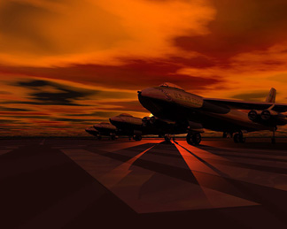 This is another drawing by Phil Alexander depicting the sun rising on the 98th BW B-47's standing alert at Lakenheath, England