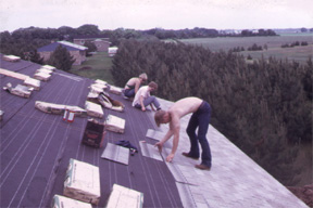 On arrival, after checking in with friends and family, we had a look at our house that had basement walls, a basement floor, all fully covered with floor joists and covered with the first layer of underlayment. We unloaded out stuff in a temporary rental unit we had found advertised in the Little Falls newspaper before ever leaving Flagstaff. It was no castle, but certainly adequate for our needs. I turned the U-Haul equipment in to the local dealer, picked up my tools and belt and reported in to join the crew on the house. Nell and Sandie were busy catching mice and making our temporary quarters livable. As they were able, they began to pitch in on the construction project wherever they could. The project progressed rapidly under Norris’s supervision, two union carpenters, and our family of three. We built our own trusses and soon had the roof in place and began the shingling process. Our son, David, having finished Electronics Tech School in Denver, stopped by enroute to Shemya Radar Base, one island short of the end of the Aleutian Chain, in Alaska. We celebrated his arrival by giving him a hammer and nails, asking him to help us shingle the roof. We tried to properly welcome him in other ways, but his participation and chance to play a part in this process was much appreciated. By July and early August, we had the doors and windows in, the fireplace and chimneys built, furnaces and ducting installed, plumbing in to the point where we had one sink at one end of the house and a toilet that would flush at the other. The sheetrock had been installed by a crew of professionals. That done, we installed the layer of particle board flooring on the main floor. The exterior wall studs were covered with a fiber board and the house was fully insulated before the sheetrock was installed. The final finish would be brick, but that would come later. With that, the professional crew departed for other projects. Nell’s brother remained available for advice, when requested. I proceeded to install our shop tools in the basement as soon as possible, including a commercial vacuum system to collect sawdust, located in what was designated as the woodworking shop area. |