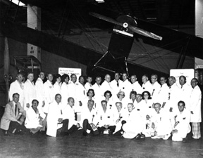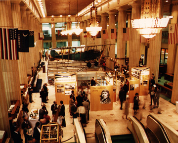 For the thirteen weeks, I managed the Historic Site with major assistance from my loyal and talented staff of remarkably resourceful and capable women, designed and received the approval for the exhibit plan, produced and mounted the enlarged photos. This meant days, evenings, weekends of continuous effort. There were times when I was falling asleep in my photo lab. The related text was printed by a new kind of machine called a computer provided through the Lindbergh Fund resources. |