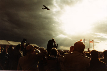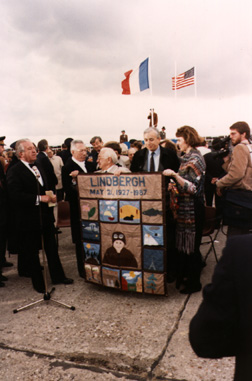 a pass over Le Bourget Airfield at the time of the unveiling of a Lindbergh bronze statue, “The Boy and the Man” on the airfield grounds. May 21, 1987. |