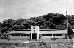 I was airborne late that evening as a replacement for a crew member that was DNIF. All went well and I was scared out of my wits, but to the crew it was "old hat" as they had already had 23 sorties under their belt. Left: Base Chapel on Saipan. |