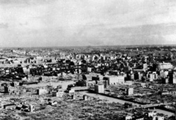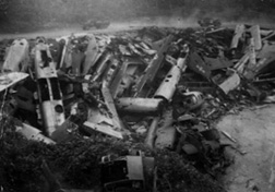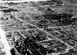 The photos of Tokyo devastation, were taken during the late spring and early summer of 1945. The photo of the Saipan aircraft wreckage boneyard, below right, gives just a glimmer of the human and material resource investement made by the U.S. to achieve the final victory. |