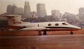 N651 LJ was still looking like new but it was tired inside. It was disposed of. A lease Lear Jet from DuJet, a Lear 23 model with all the Lear 24 mods installed from Miami, N11111LJ was brought into the service. That aircraft lasted a year. There was always chatter amongst the controllers about the tail number. It was from Zack Mosely's cartoon, Smiling Jack. Triple11, Five aces, 11 triple1, and so on. A Lear 24B with GE-6 engines was then acquired, on lease, from a company in Denver for the Kansas City Insurance Company's exclusive use. Tail number N77LS. |