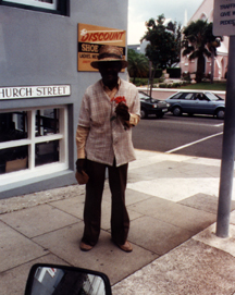 On a Sunday morning Kipp and I headed for church at the Cathedral in downtown Hamilton. On the way, we saw an elderly Afro Bermudian walking very slowly toward church with a small flower in his left hand. We stopped the motor scooter and took his picture. We exchanged greetings and off we went and very slowly. After church we did some more exploring.. We went North to Black Witch Pass and West on the main road to Spanish Point, the end of that part of the road. It is mostly an industrial area and Sunday was the only good time to go that route as it is laden with large trucks all day and all night long during the rest of the week with ships off-loading the cargo for transport into the many warehouses along this road. |