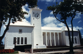 Just South of Hamilton and across the bay, there is a small island that has a cable running out to the island where a large house has been built. There is a pulley system that you pull yourself along for about 300ft to reach the island with a small boat, or likewise to return to the mainland island ground. Pic #35 It has power and fresh water, electric and a sewer system that does not pollute the water around this small island. Very different. In downtown Hamilton about 2 blocks from Front Street is the courthouse. |