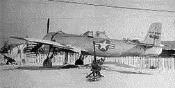 Above, Left: Japanese Tony fighter acft., in front of barracks, Yokota. Left: Japanese Zero fighter acft. You will note that the USAF insignia has been installed on the Japanese fighter aircraft. |