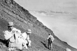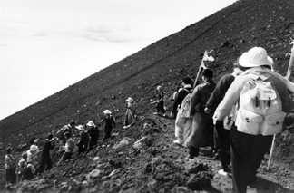 One of these is a brief selection of views taken on the ascent and descent of Mount Fuji. The second set includes frames of a young Japanese girl in traditional dress. We hope you will find this a fitting beginning for this black & white photo tour of the land and people who inhabited the area north and west of Tokyo at this time in history. |