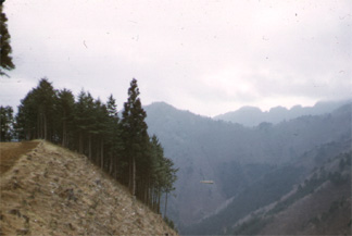 Can you find the cluster of logs being transported across the valley from right to left? Look just to the right of the lower edge of the clump of trees. You will see them again in a later photograph. |